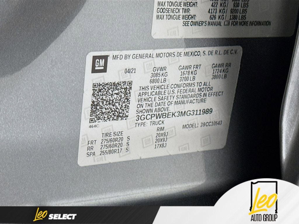 8-Speed Automatic, Black Cloth, 170 Amp Alternator, 3.5 Diagonal Monochromatic Display, 4G LTE Wi-Fi Hot Spot Capable, Bluetooth® For Phone, Body Color Grille, Chevrolet Connected Access Capable, Color-Keyed Carpeting Floor Covering, Compass, Custom Convenience Package, Custom Value Package, Deep-Tinted Glass, Electric Rear-Window Defogger, Electronic Cruise Control, EZ Lift Power Lock & Release Tailgate, Front Frame-Mounted Black Recovery Hooks, Front Rubberized Vinyl Floor Mats, Hitch Guidance, Infotainment Package, LED Cargo Area Lighting, Manual Tilt Wheel Steering Column, OnStar & Chevrolet Connected Services Capable, Power Door Locks, Power Front Windows w/Driver Express Up/Down, Power Front Windows w/Passenger Express Down, Power Rear Windows w/Express Down, Preferred Equipment Group 1CX, Rear 60/40 Folding Bench Seat (Folds Up), Rear Rubberized-Vinyl Floor Mats, Remote Keyless Entry, Remote Vehicle Starter System, SiriusXM Radio, Standard Tailgate, Theft Deterrent System (Unauthorized Entry), Trailering Package.
