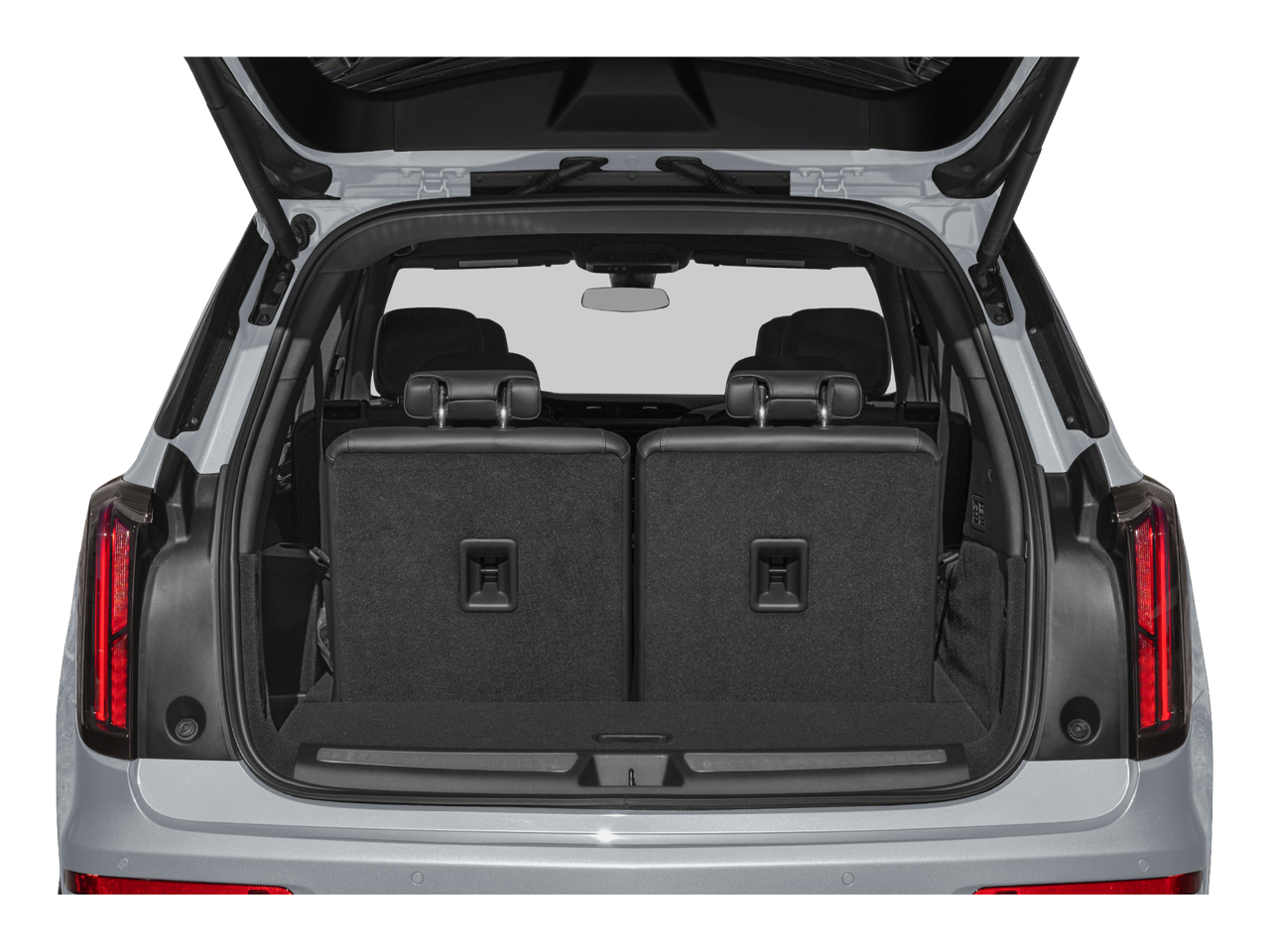 - Opens or closes when the system senses the key fob and the driver extends their foot under the left-hand side of the rear bumper over an image of the Cadillac Crest projected under the vehicle